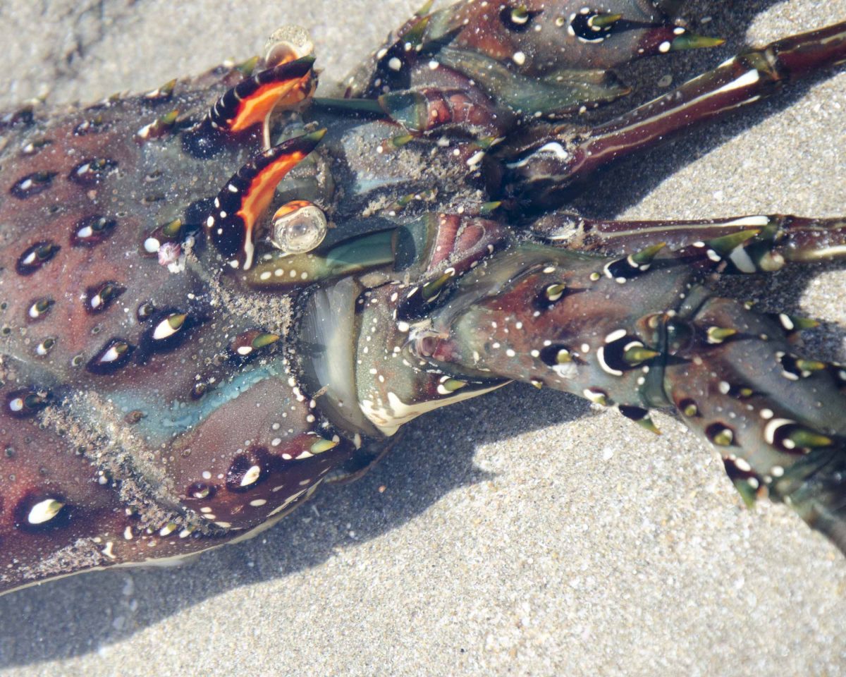 A lobster body found on the beach… perhaps the remains of someone’s lunch?