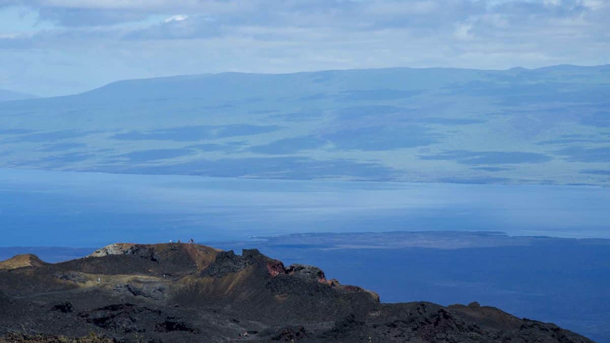 View of Isla Santiago from the slopes of Volcán Sierra Negra, Isla Isabela, the Galapagos.