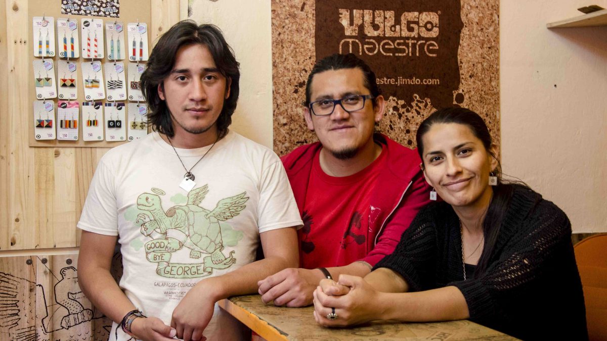The Owner-Artists of Vulgomeastre stand in their small shop