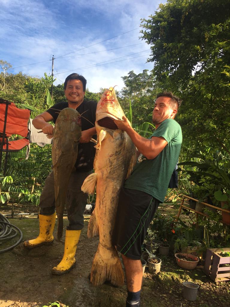 La sorpresa fue enorme tan equivalente al tamaño de los bagres sapotes que pescaron, uno de ellos pesó 60lbs y el otro 140lbs, sin embargo Robert comenta que éste tipo de pez podría sobrepasar las 250lbs, además agrega entre risas que pescó un bagre pintadillo de 50lbs hace tan solo una semana atrás.